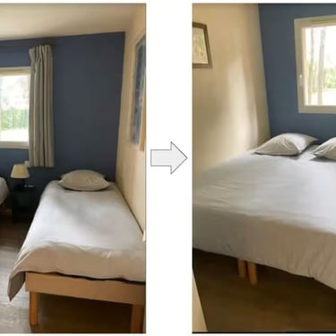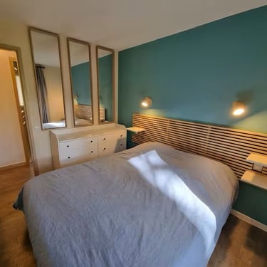 Le logement est très agréable à vivre jusqu'à 6 personnes car il dispose de 3 chambres avec 5 vrais lits (une chambre avec 1 lit double de 160cm, une chambre avec 2 lits simples et une chambre cabine ave 1 lit superposé), 2 salles de bain et 2 WC.