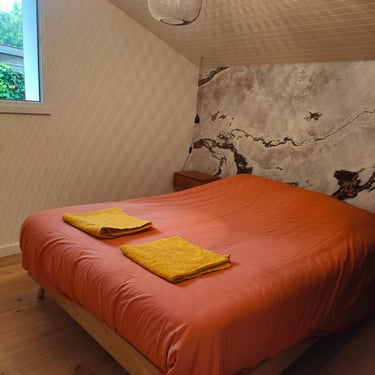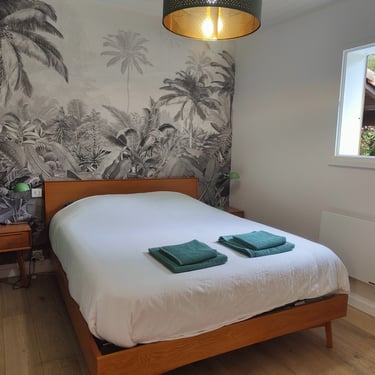 Une jolie chambre double avec lit en 140 et dressing se situe à coté de la cuisine.